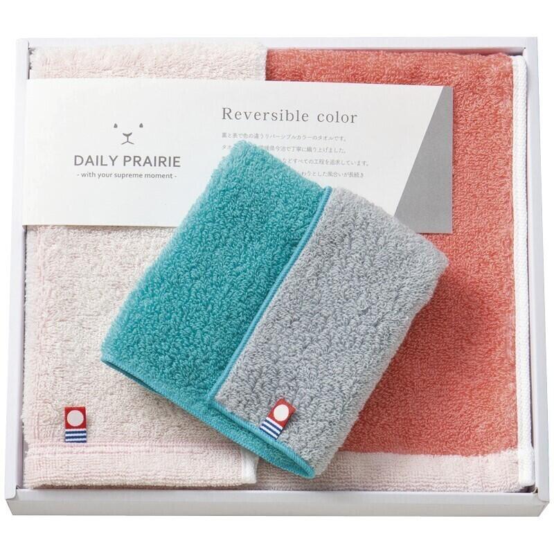 裏と表で色の違うリバーシブルカラーのタオルです。タオルの産地、愛媛県今治市で丁寧に織り上げました。
