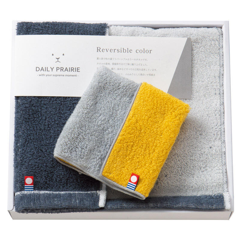 裏と表で色の違うリバーシブルカラーのタオルです。タオルの産地、愛媛県今治市で丁寧に織り上げました。