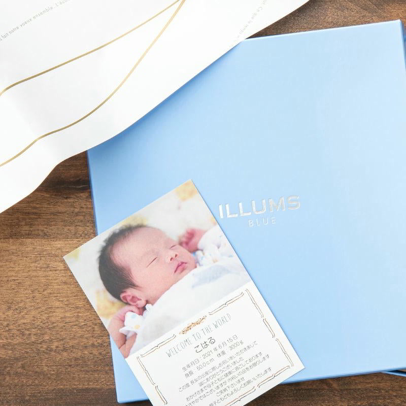 明るい水色がパッと目を引くのイルムス専用化粧箱に入れてお届け。