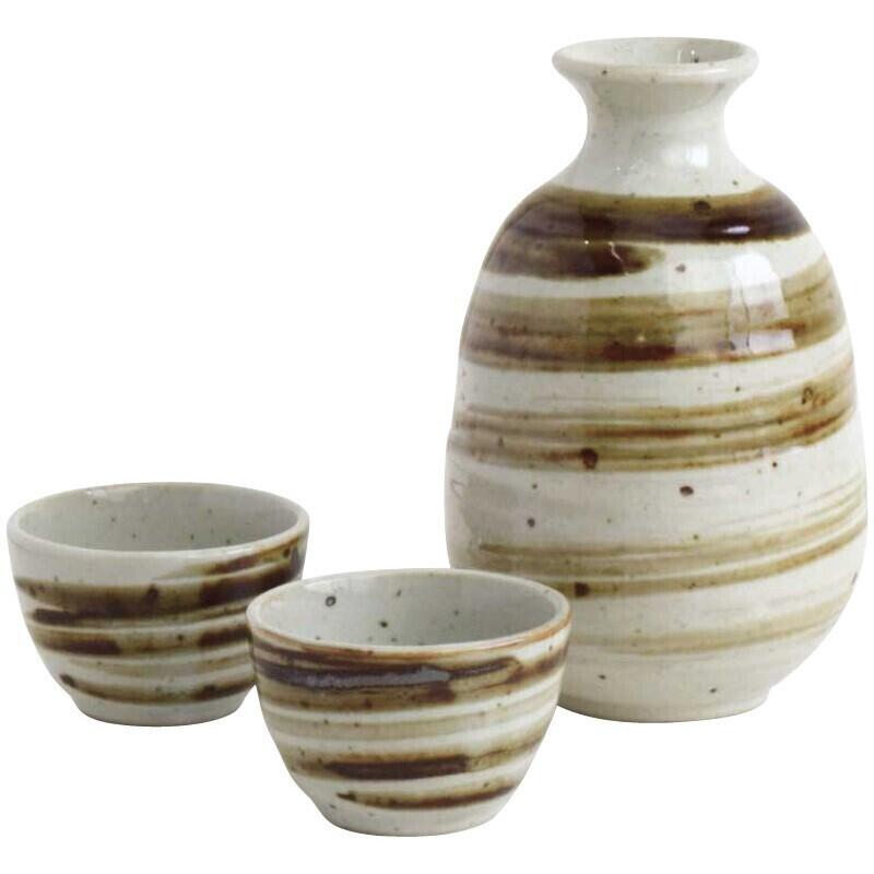 粉引釉にフリーハンドで描かれたうず模様。味わい深い酒器揃です