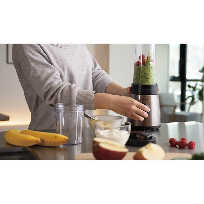 高級感溢れるステンレスの本体と2段階スピードのスリムブレンダー