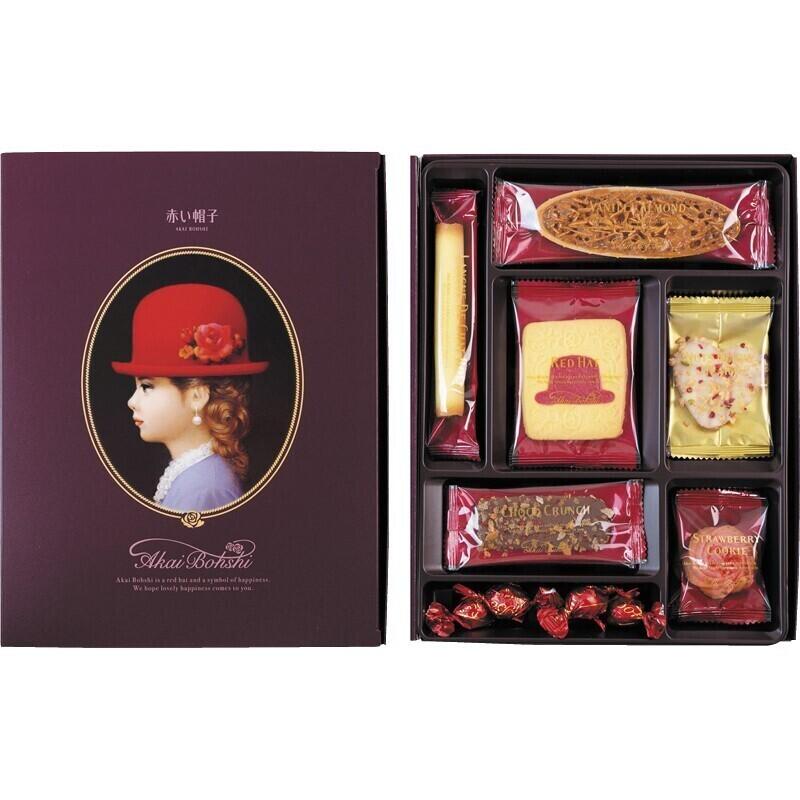 【セット内容】ホワイトボール×5、ナッツベリーハート・バニラアーモンド・チョコクランチ・ラングドシャロール・ストロベリークッキー・レッドハット×各2