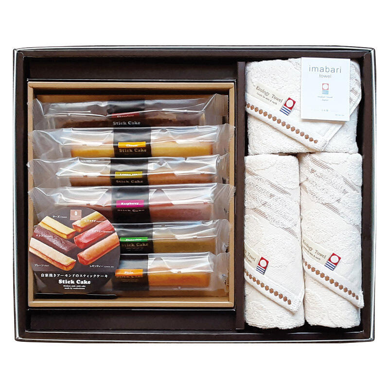 【セット内容】フェイスタオル(34×80cm)×2、ウォッシュタオル(34×35cm)・スティックケーキ(プレーン・チョコ・ラズベリー・ブルーベリー・チーズ・ピスタチオ・レモンティ)×各1