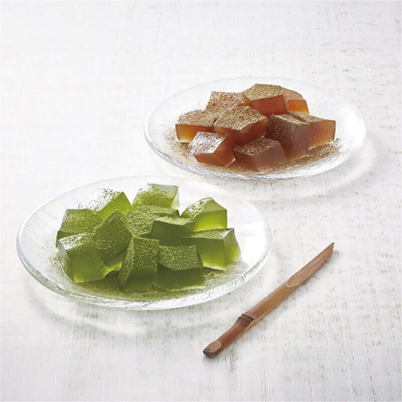 宇治茶の風味広がる「もっちり ぷるり」としたわらび餅。抹茶とほうじ茶の2つの美味しさを詰め合わせました。
