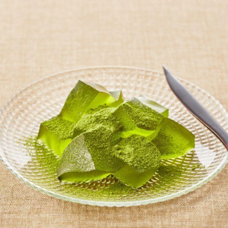 鮮やかな緑が清々しい「もっちり ぷるり」とした抹茶わらび餅。苦みの効いた抹茶きな粉が、美味しさを引き立てます。