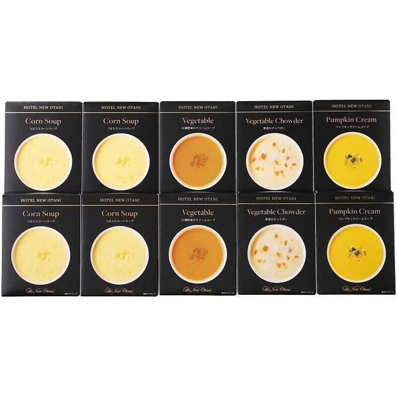 【セット内容】つぶ入りコーンスープ(150g)×4、野菜のチャウダー・10種野菜のクリームスープ・パンプキンクリームスープ(各150g)×各2