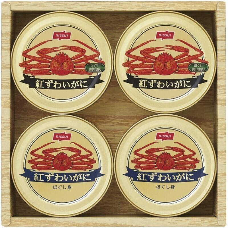 紅ずわいがにの豊かな旨みを味わえる、定番のかに缶詰ギフトです。