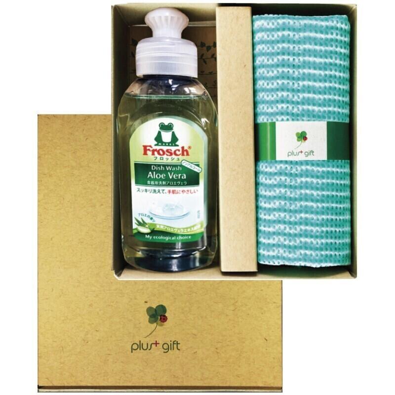 自然にやさしく、使う人にもやさしい食器用洗剤フロッシュのギフトセットです。木のように素朴で自然な手触りの紙を使用した化粧箱入り。