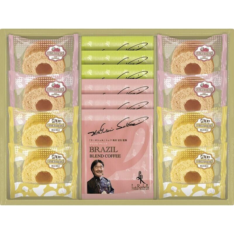 【セット内容】バウムクーヘン(ミルク・あまおういちご)×各4、ドリップコーヒー(ブラジルブレンド・キリマンジャロブレンド)(各7g)×各3