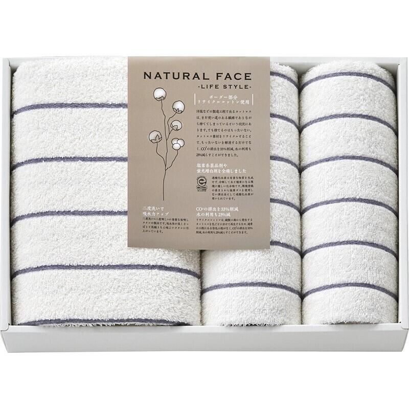 地球にも人にもやさしい良質なものを。ボーダー部分リサイクルコットン使用でCO2の排出や水の利用を削減、過酸化水素漂白でエコマーク認定商品です。吸水性が良くさっぱりと肌触りも心地よいタオルです。