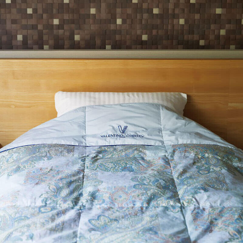 【材質】側地:ポリエステル80%・綿20%、詰めもの:ダウン50%・フェザー50%(約0.25kg)