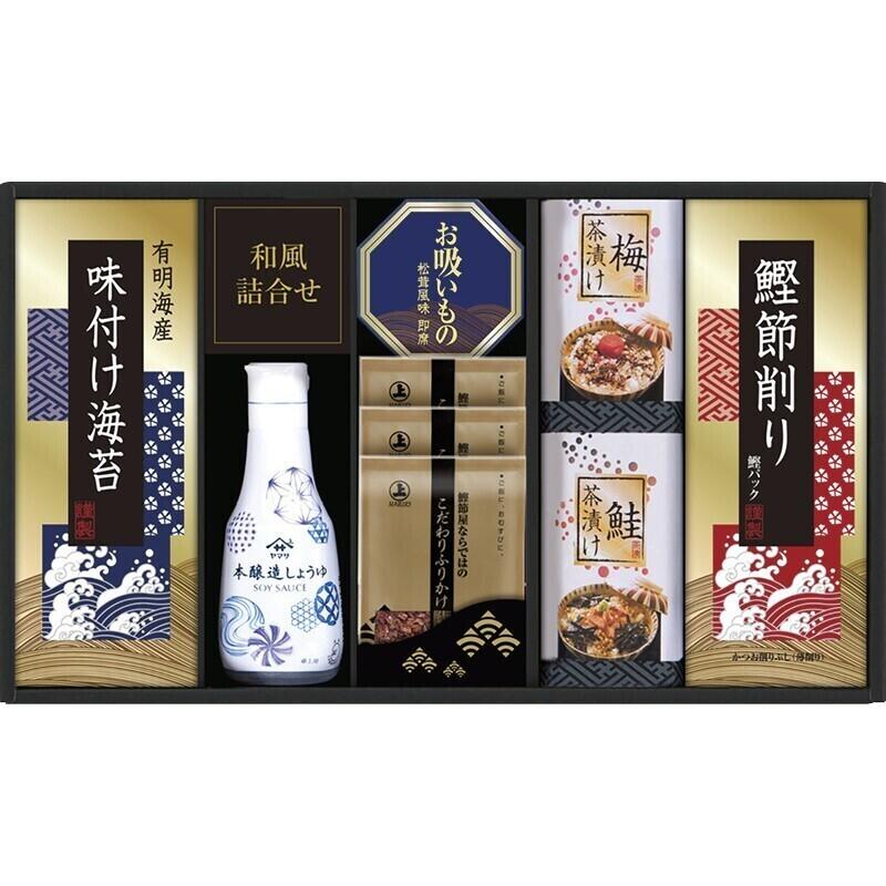 ヤマサ鮮度卓上しょうゆや鮭茶漬け、梅茶漬けなど、和の風味を楽しめるアイテムを詰め合わせたセット。