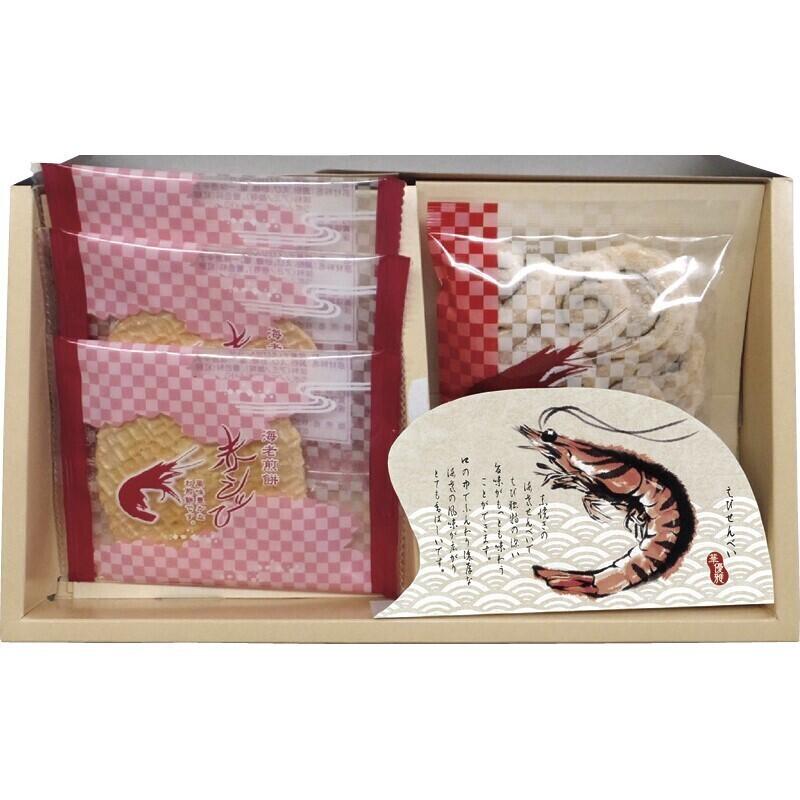 【セット内容】赤えびせんべい(1枚)×3、えびせん(うず巻)(10g)×1