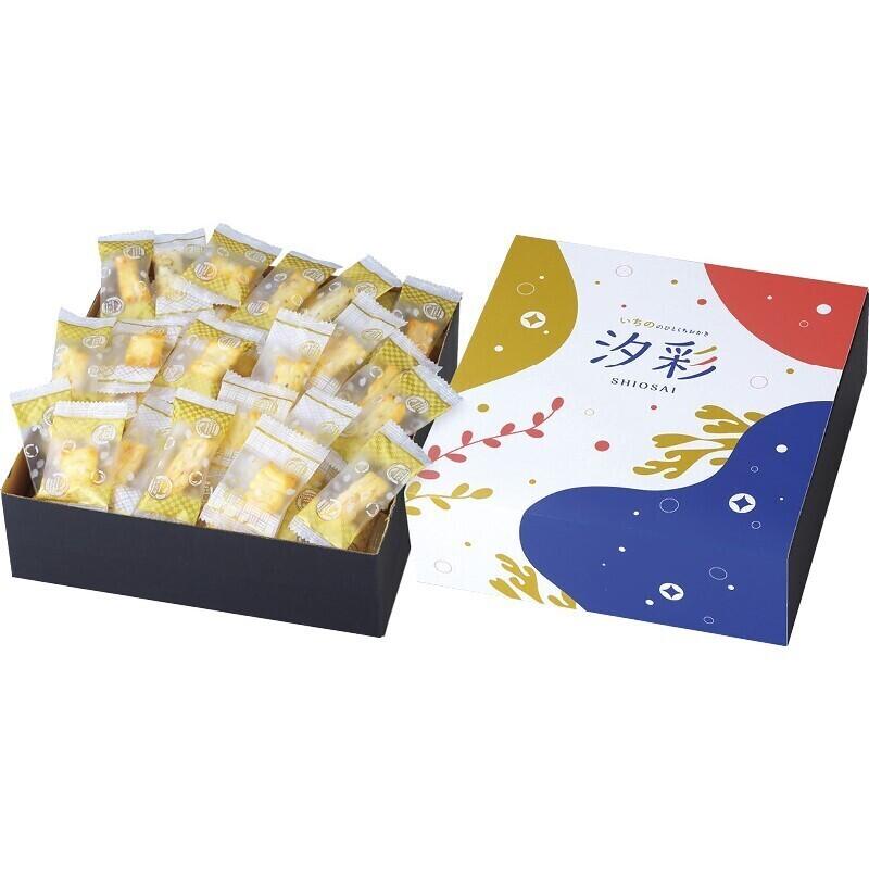 海の幸を味わえる、ひと口サイズのおかき。佐賀県産ひよくもちのもち米は、もち米本来の甘味やねばりを持ち、おかきを作るには絶好の米質と言われています。