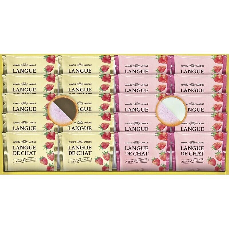 福岡県産あまおうを使用したいちごピューレを練り込んだサクサクのラングドシャクッキーでオリジナルのミルクチョコとホワイトチョコをサンドしました。優しい甘さと軽い食感、滑らかなくちどけをお楽しみください。