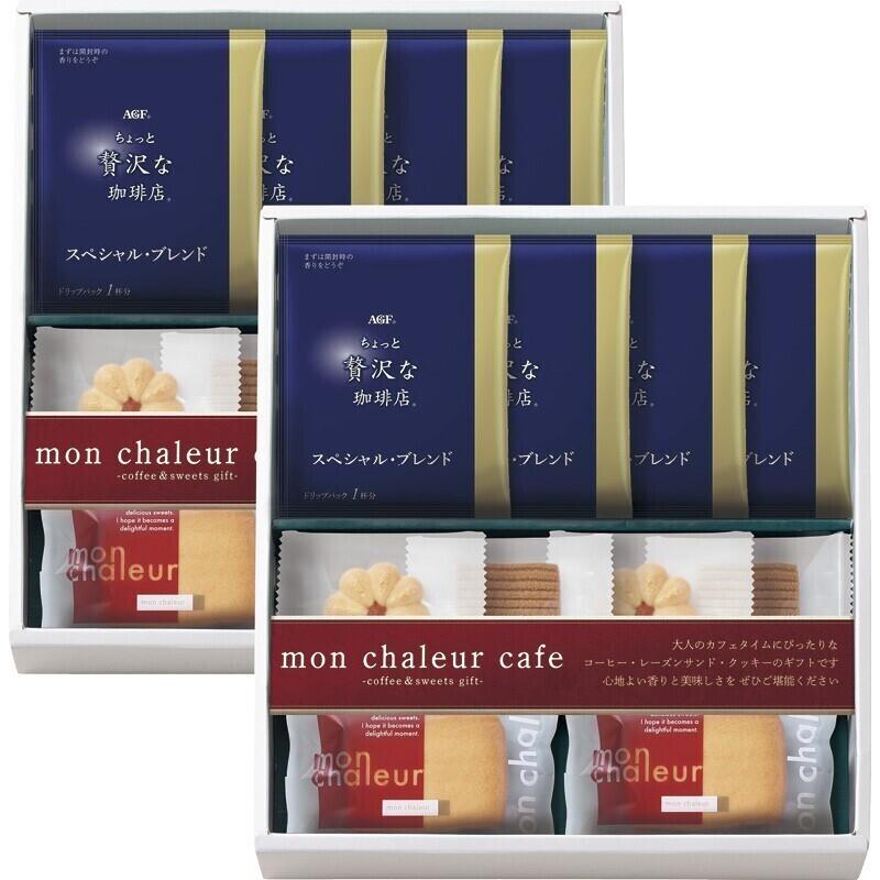 【セット内容】AGF®「ちょっと贅沢な珈琲店®」ドリップパックスペシャルブレンド(7g)×8、レーズンサンド・花型いちご・アメリカン×各4