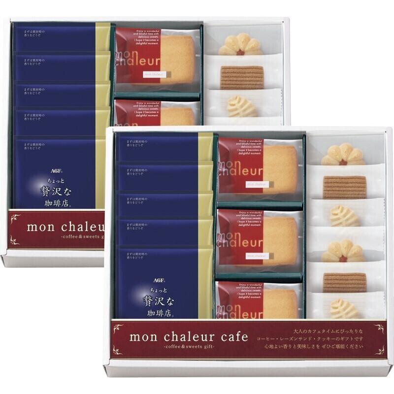 【セット内容】AGF®「ちょっと贅沢な珈琲店®」ドリップパックスペシャルブレンド(7g)×10、レーズンサンド×6、紅茶リーフ・花型いちご・アメリカン×各4