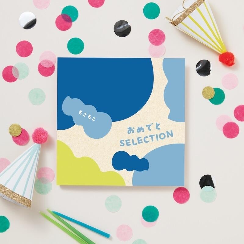 定番のベビーグッズやママパパが嬉しいアイテムなどを選べるカタログと、「おめでとセレクション」オリジナルのつみきとプレイマットがセットになったギフトです。オノマトペをモチーフにしたデザインは、ポップでかわいいだけではなく、お子さんの知育遊びをうながします。