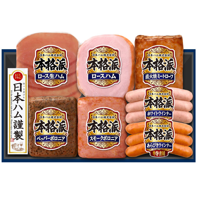 日本ハムの自信作、本格派の豪華7種セットです。ロースハム、ロース生ハム、特撰あらびきウインナーなど、長年愛され続けた定番の味を詰め合わせました。