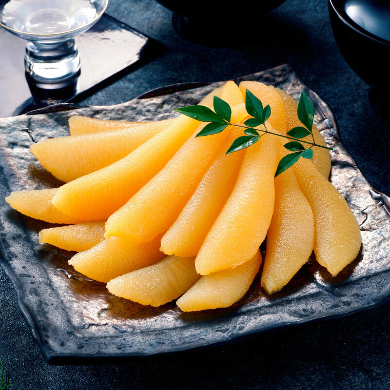 綺麗な形のものを選りすぐった塩数の子。パリッとした食感と繊細な旨さが特徴です。箱に綺麗に一本ずつ並べてあり、贈答用としてもおすすめです。