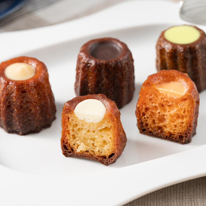 表面はカリッと中はもっちりとした伝統的な食感ながら、日本人の味覚に合うように改良されている、ドミニク・ドゥーセの店でも人気のカヌレプチシリーズ。かわいく食べやすいサイズながら本格的な味わいをお楽しみいただけます。