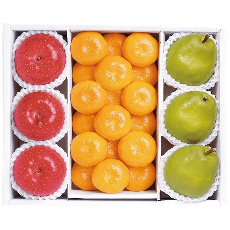 現品・内容・サイズ・材質: 長野県産サンふじ・山形県産ラフランス各3玉(各計約230g)・和歌山県産みかん約2.2kg・常温