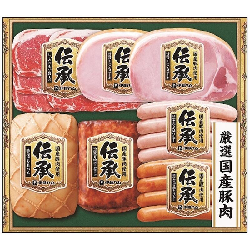 「伝承」は国産豚肉を原料とし、創業者「伊藤傳三」のハムづくりの想いを込めました。