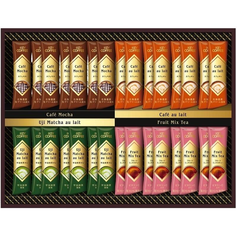 【セット内容】フルーツミックスティー(12g)・カフェオレ(7g)×各8、宇治抹茶オレ(12g)・カフェモカ(7.8g)×各7