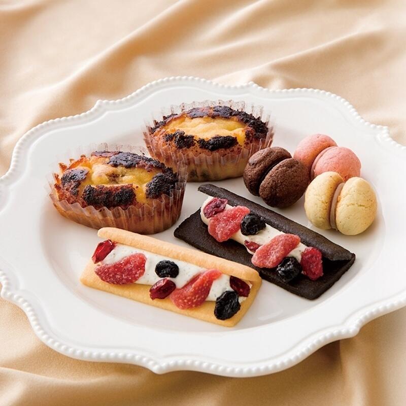 ケーキのように華やかでいろいろな味が楽しめるスイーツの詰め合わせです。