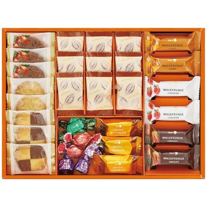 現品・内容・サイズ・材質: チョコレートミックス10個・チョコレートサブレ9枚・ミルフィーユ(アーモンド・ストロベリー・チョコレート各2個)・クッキーコレクション(チョコレートチップ・ジャンドゥヤ&ホワイト各3枚・ダージリンティー2枚)