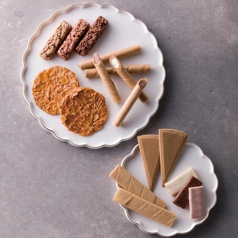 薄く焼き上げた軽やかな食感の「エコルセ」をはじめ、香ばしいアーモンドの「マンデルチーゲル」、チョコレートで包んだ「ショコラエコルセ」、彩り豊かな「米粉クランチ」を詰め合わせました。