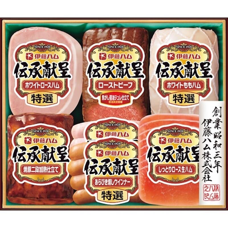 低温真空調理ローストビーフ焦がし醤油ジュレ仕立て180g、特選(ホワイトロースハム180g、ホワイトももハム220g、あらびき燻しウインナー・あらびき芳醇ウインナー各80g)、焼豚二段加熱仕立て160g、しっとりロース生ハム45g