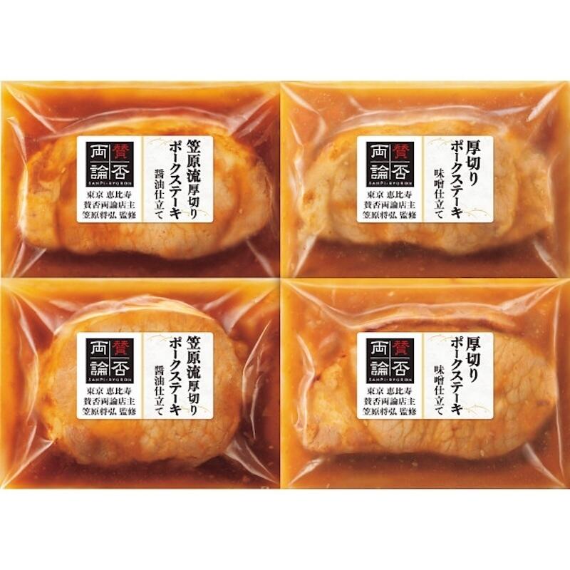 賛否両論(厚切りポークステーキ 味噌仕立て・笠原流厚切りポークステーキ 醤油仕立て各200g×各2)