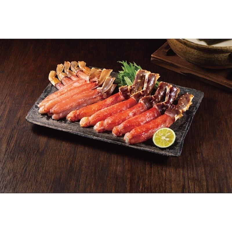 生たらばがにポーション300g(加熱調理用・たらばがに:ロシア又はノルウェー産)、生ずわいがにポーション300g(加熱調理用・ずわいがに:ロシア又はカナダ又はアメリカ又はノルウェー産)、しゃぶしゃぶ用たれ25ml×4p