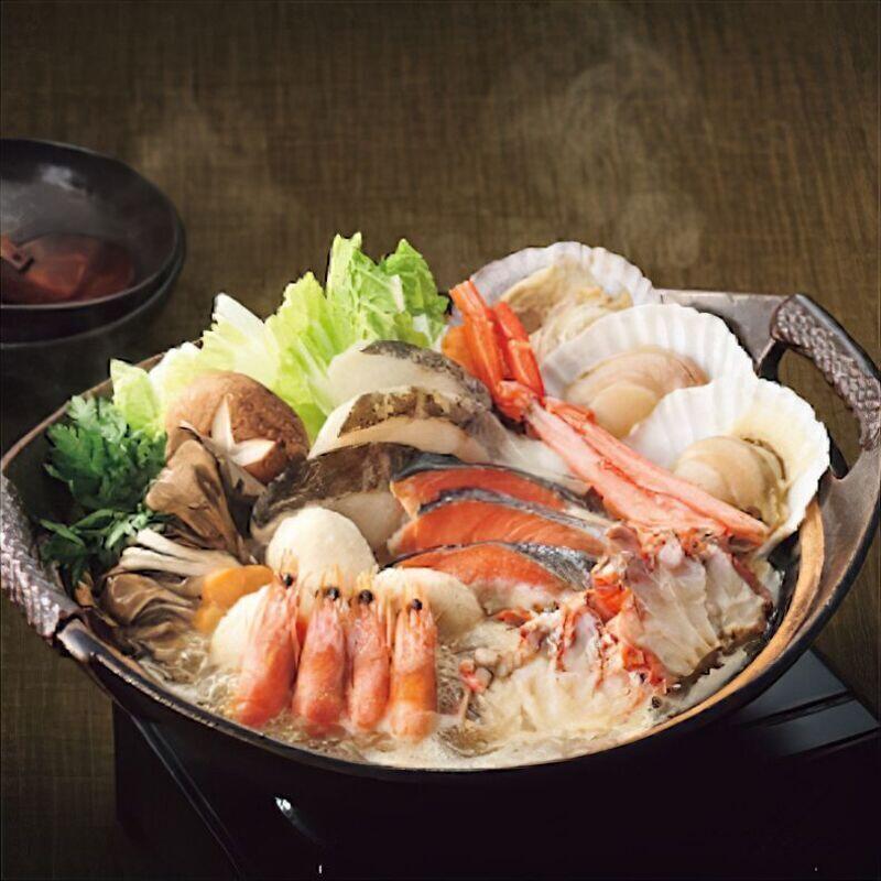多彩な旨みが鍋の中で一つにとけあう海鮮寄せ鍋。紅ずわいがにをはじめ、鮭、タラ、ホタテ、エビなど海の幸を多彩に盛り込んだ海鮮鍋のセット。様々な具材の旨みが鍋の中で一つになるおいしさを満喫していただけます。
