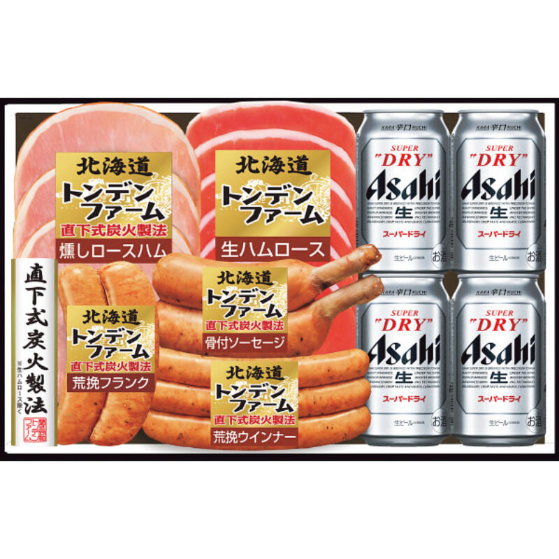 職人の手で丁寧に仕上げた北海道トンデンファームのハム・ソーセージと、人気のビール「アサヒスーパードライ」を組み合わせたお歳暮限定の贅沢ギフト。