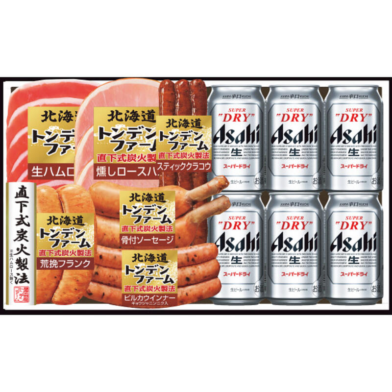 職人の手で丁寧に仕上げた北海道トンデンファームのハム・ソーセージと、人気のビール「アサヒスーパードライ」を組み合わせたお歳暮限定の贅沢ギフト。