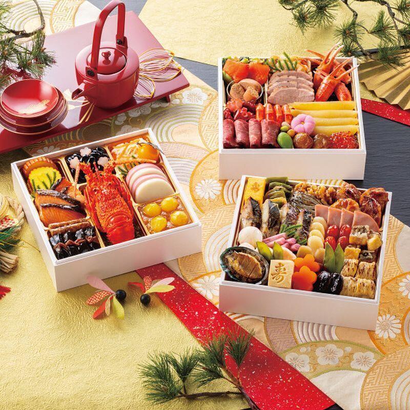 ★<一の重>14品目:伊達巻、北海道産黒豆の甘煮、百合根梅飾り、紅白なます、金柑甘露煮、キングサーモン西京焼き、国産ごぼうのたたき、にしん入昆布巻き、昆布サラダ、ボイルイセエビ、紅かまぼこ、白かまぼこ、きんとん、栗甘露煮<二の重>20品目:万願寺唐辛子と油揚げ煮、寿厚焼き玉子、胡桃甘露煮、田作り、鶏もも西京焼き、鰆西京焼き、手まり餅、蓮の芽酢漬け、白花豆煮、ドライトマト赤ワイン煮、淡路島産すずきの南蛮漬け、黒糖ローストポーク、活きあわび煮、ごぼう旨煮、花こんにゃく煮、海老入りつみれ、きぬさや煮、椎茸煮、寿高野豆腐含め煮、焼湯葉煮★<三の重>17品目:スモークサーモン、小松菜と油揚げ煮、鳴海屋焼明太子、根菜マリネ、合鴨ワイン煮、わかめ煮、蟹爪肉、たこの梅じそ風味、海老スモーク風味、紅花餅、ミックスビーンズ、ローストビーフ、若桃甘露煮、松前漬け、味付数の子、帆立鼈甲焼き、いくら醤油漬け★
