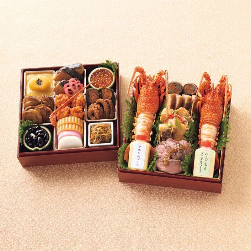 伊勢海老料理の老舗「中納言」が縁起物である伊勢海老を中心に吟味した素材を和風、洋風に調理したおせちです。