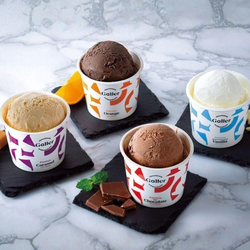 チョコにこだわる『ベルギー王室ご用達ガレー』監修のチョコレートアイスクリームの詰合せ。バニラアイスクリームに、ホワイトチョコを加えたなめらかな食感の「ホワイトチョコレートバニラ」、スイートチョコに乳製品を加えまろやかな味に仕上げた「ミルクチョコレート」、ホワイトチョコにほんのり甘く香ばしいキャラメルを加えた「キャラメルチョコレート」とチョコレートアイスにオレンジピールを混ぜ込んだ「オランジェット」の4種揃えたカッププレミアムチョコアイスのセットです。