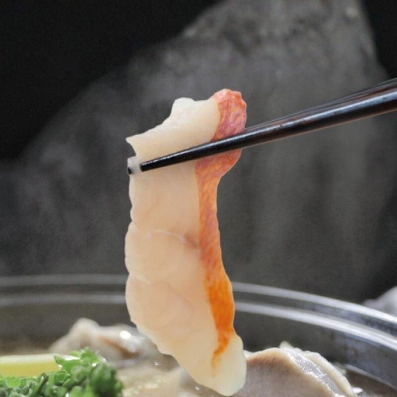 銚子沖で手釣りにより水揚げされた「銚子つりきんめ」をしゃぶしゃぶ用にスライスしました。
