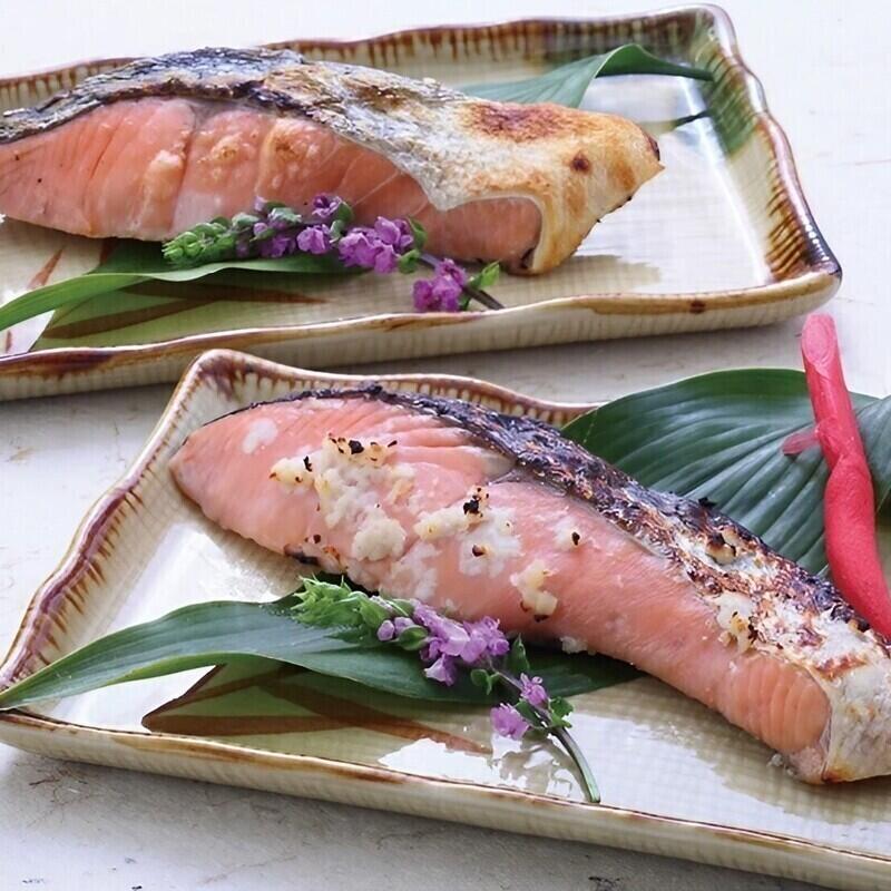 北海道産の天然秋鮭を、専門の職人が丁寧に自然塩をすり込み旨味を最大限引き出した塩鮭の切身と独自の塩糀に漬け鮭の旨味を更に引き立て、まろやかにしたさざ浪(塩糀)漬切身の詰合せです。