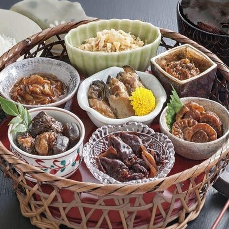 国産牛のすじこん、九条ねぎ味噌、帆立のしぐれ煮、かきの浜焼きなど、国産の主原料を使用した人気のごはんのおとも7種類を、食べきりサイズでご用意いたしました。
