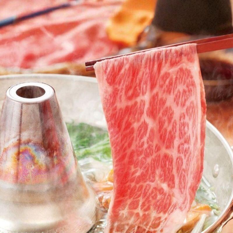 柔らかく、あっさりとしたと味わいの赤身の松阪牛ももをさっとくぐらせぎゅっとうま味を閉じ込めたしゃぶしゃぶのお肉を今半のポン酢とごまだれで食べ比べてお召し上がりください。
