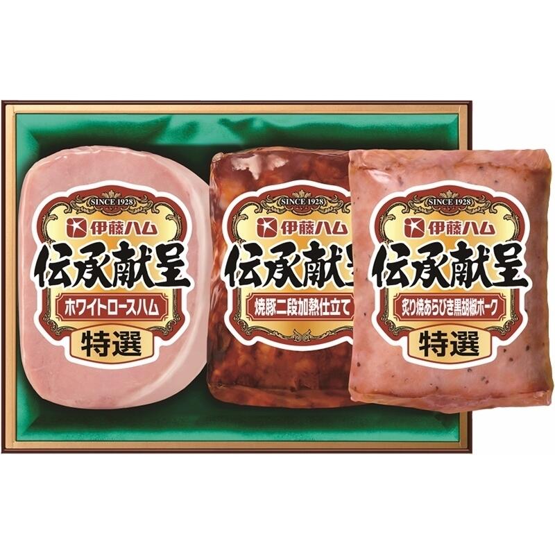 【セット内容】特選(ホワイトロースハム(180g)・炙り焼あらびき黒胡椒ポーク(160g))・焼豚二段加熱仕立て(160g)×各1