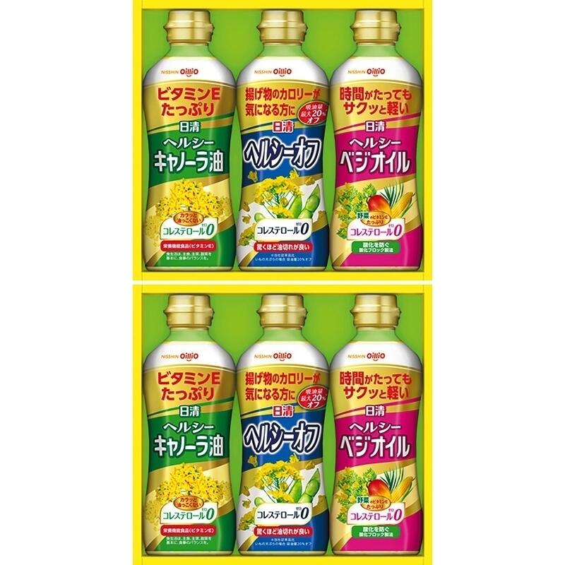 軽やかな風味のキャノーラ油、カロリーオフがうれしいヘルシーオフ、素材の味を引き立てるベジオイルをセットにしました。
