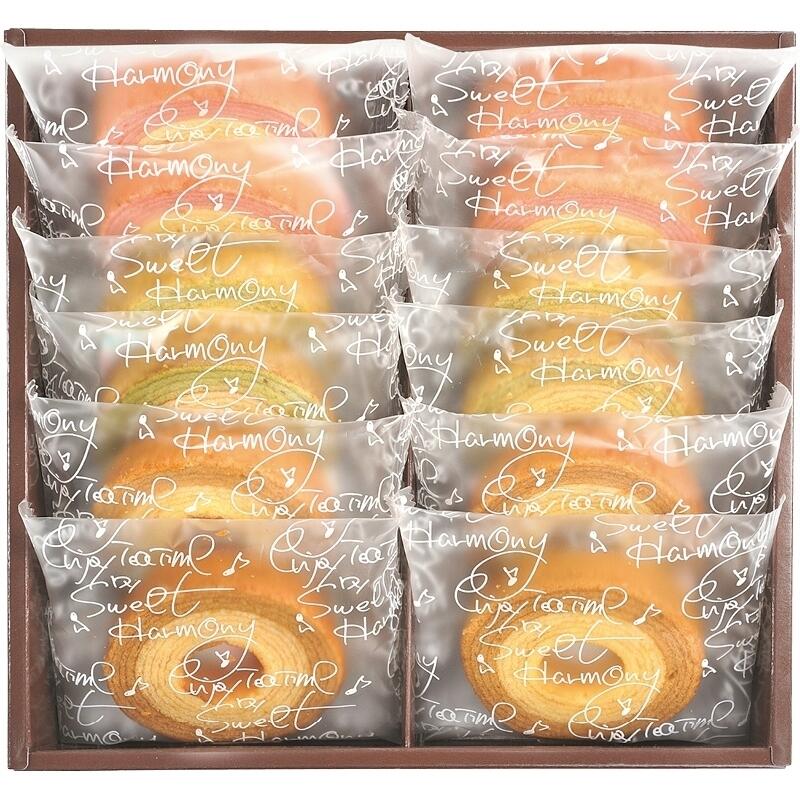 3種類の2層バームクーヘンが入ったカラフルなセット。