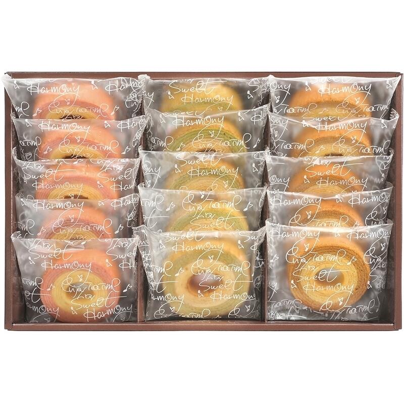 【セット内容】2層バームクーヘン(キャラメル&ミルク・ストロベリー&ミルク・抹茶&ミルク)×各5