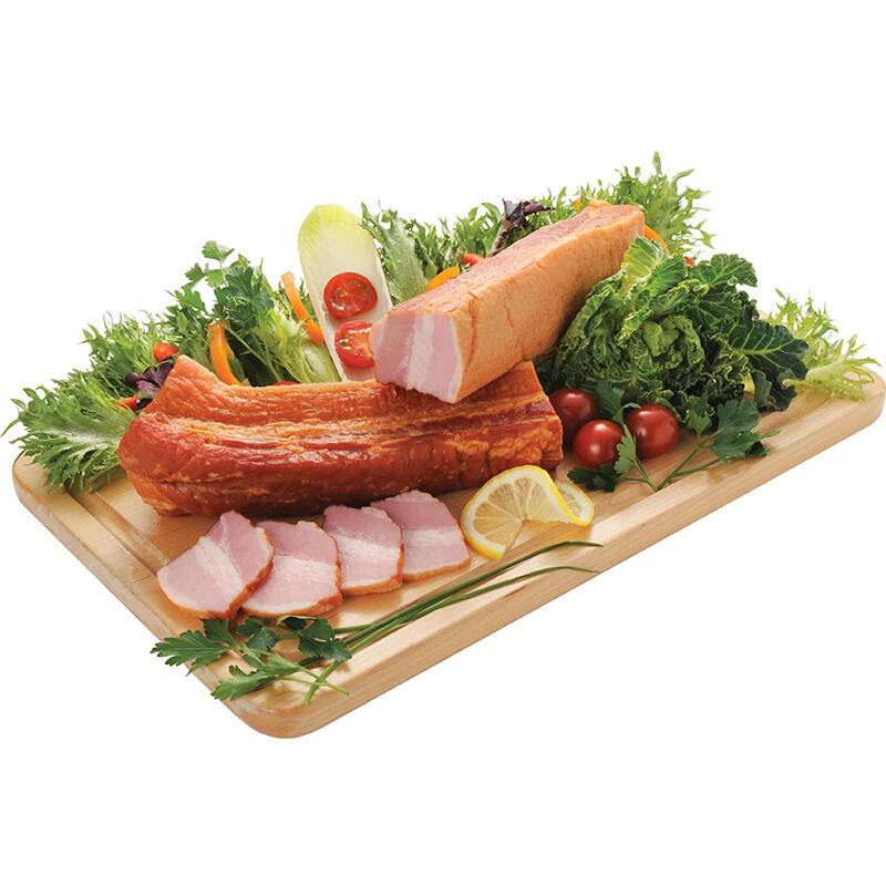 豚バラ肉を吊るして燻したスモークの薫り豊かなロングタイプのつるしベーコン2本とあらぎりわさびのセットです。