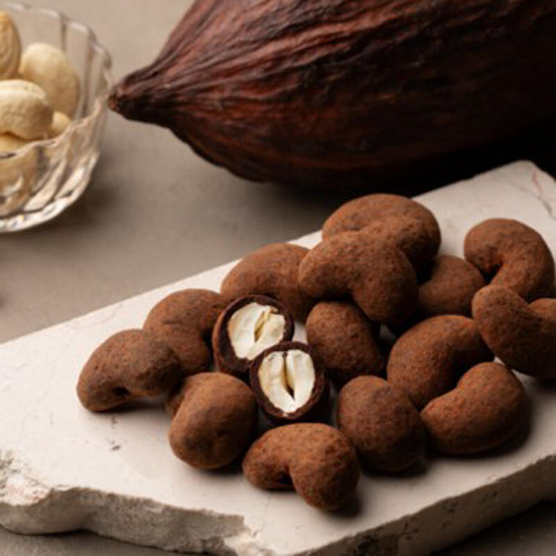 インドネシア・スラウェシ島産の大粒カシューナッツを丸ごとチョコレートで包み込んだ定番商品。生のカシューナッツが持つ自然な甘みと、カカオ分78%のダークチョコレートの組み合わせは、奥深い大人な味わい。